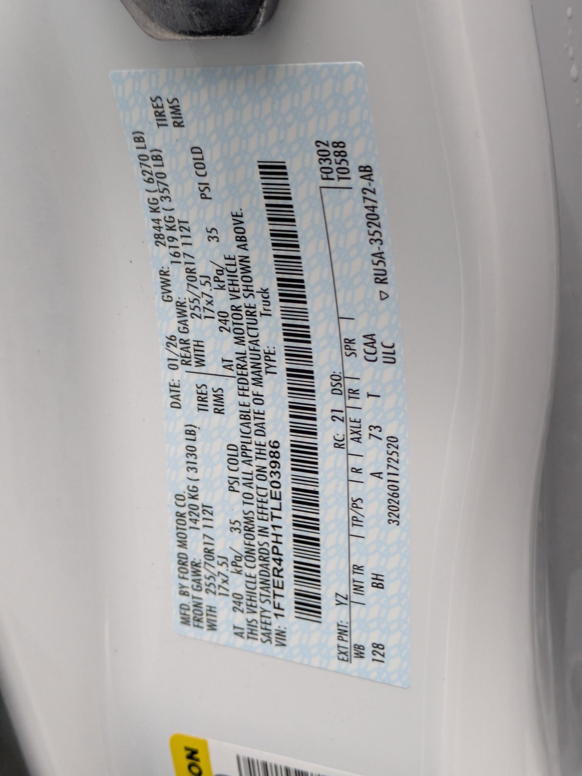 - Gross Axle Wt Rating - Front (lbs): 3130