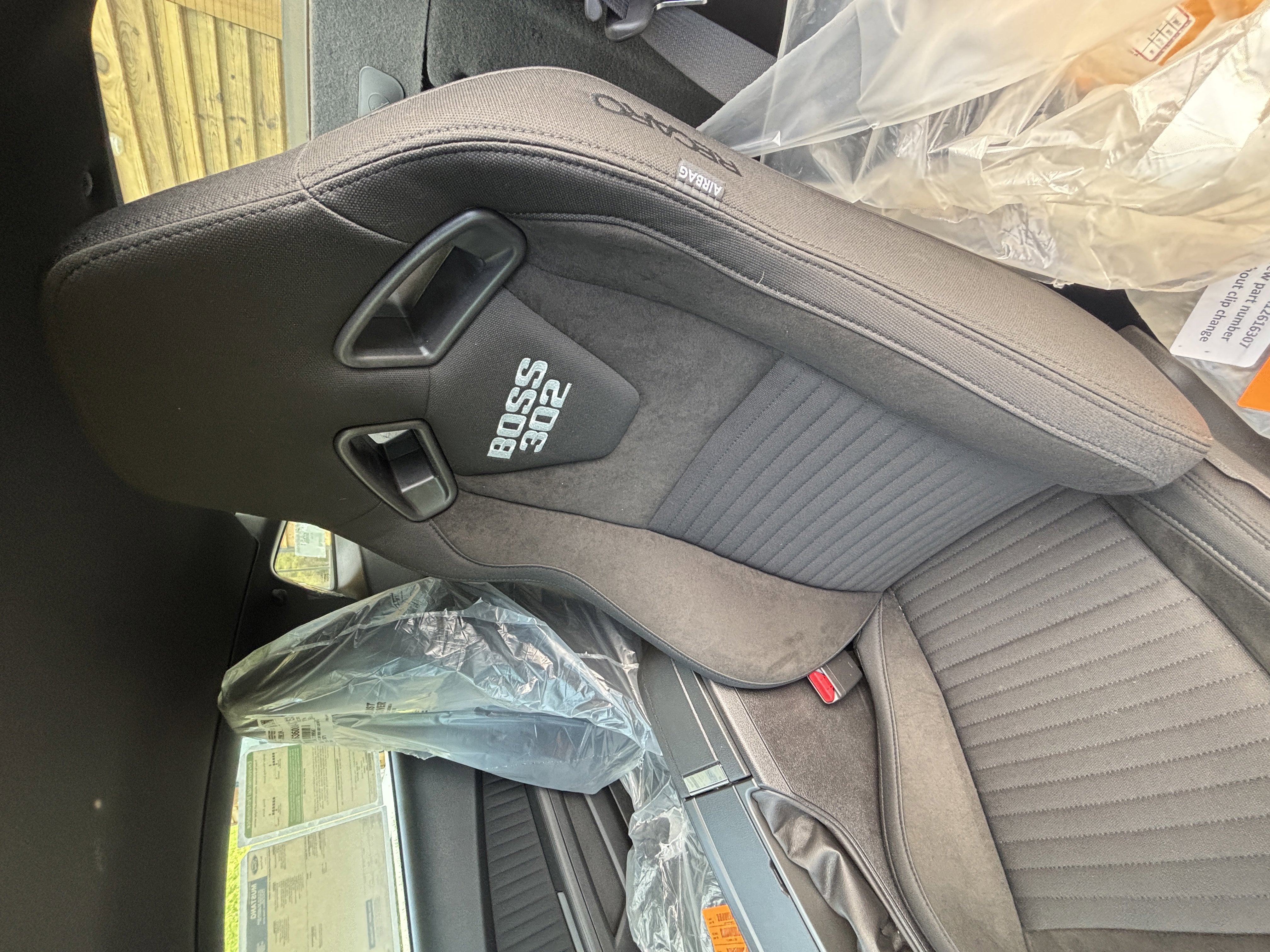 RECARO Cloth Sport Seats: Deeply bolstered buckets with embroidered Boss logos.