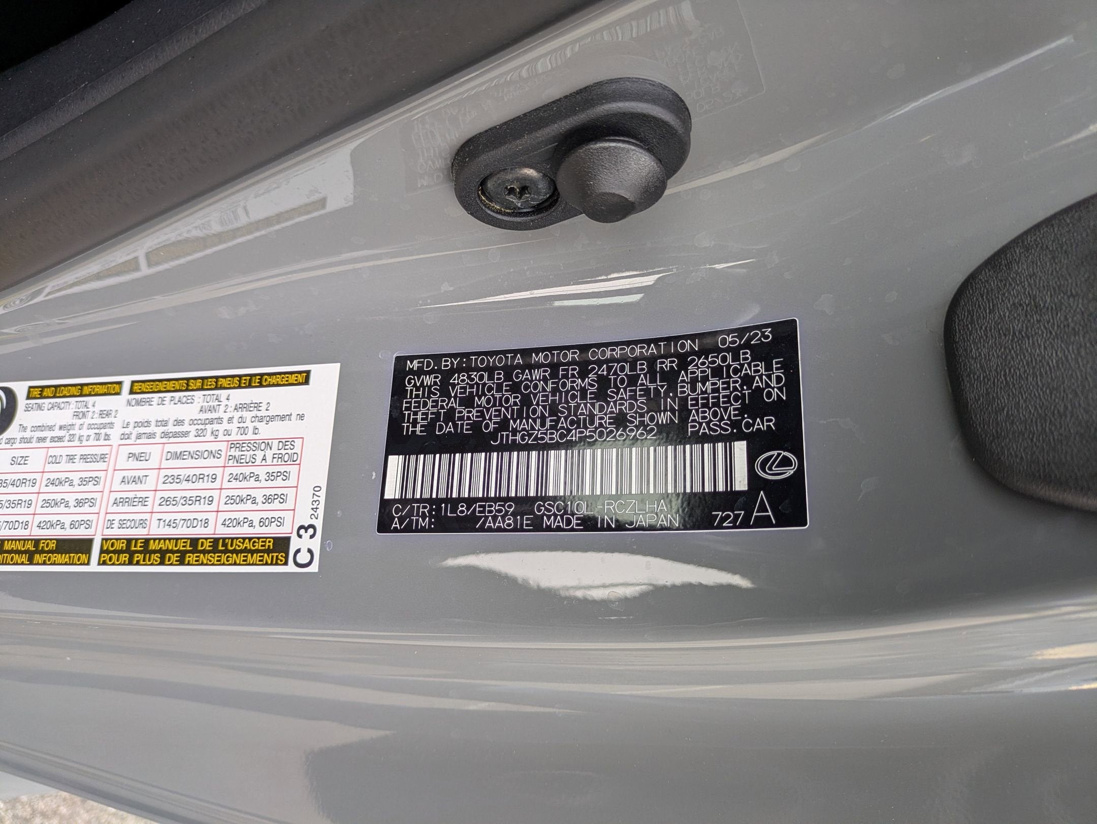 - Vehicle Name: Lexus RC