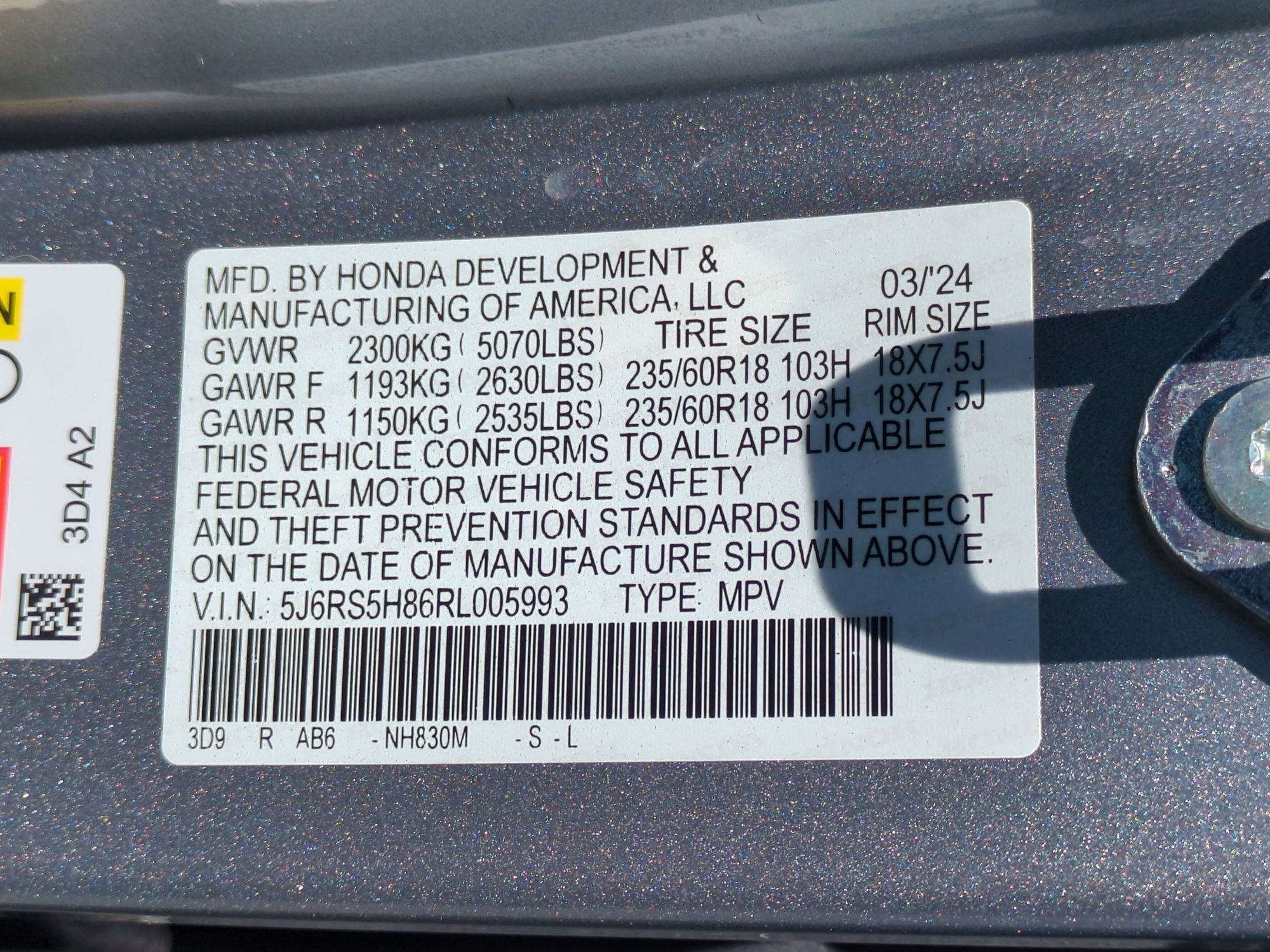 - Tires: 235/60R18 103H
